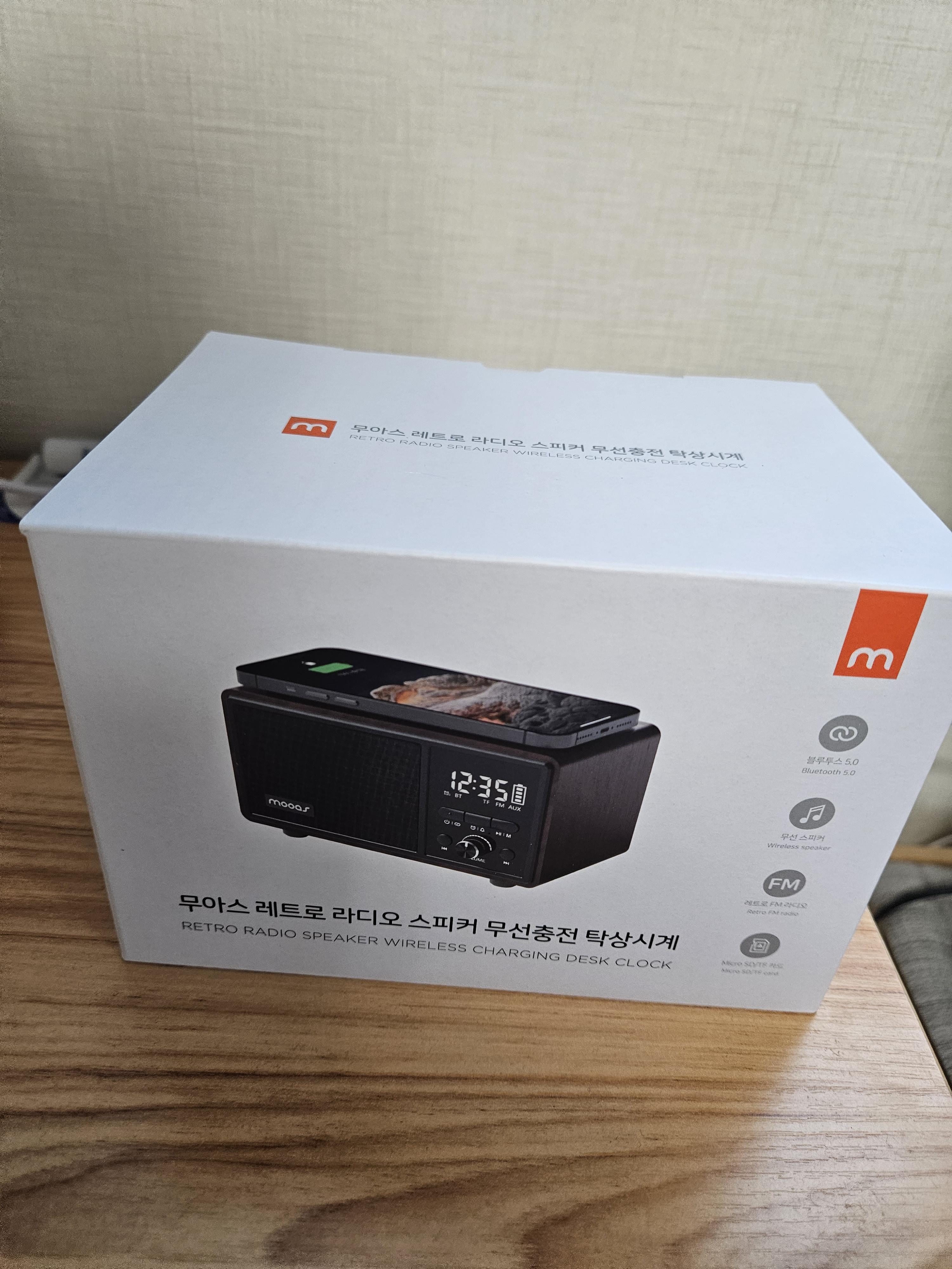 무아스의 레트로 라디오 스피커 무선충전 탁상시계 ! 이름이 생각보다 길죠?
