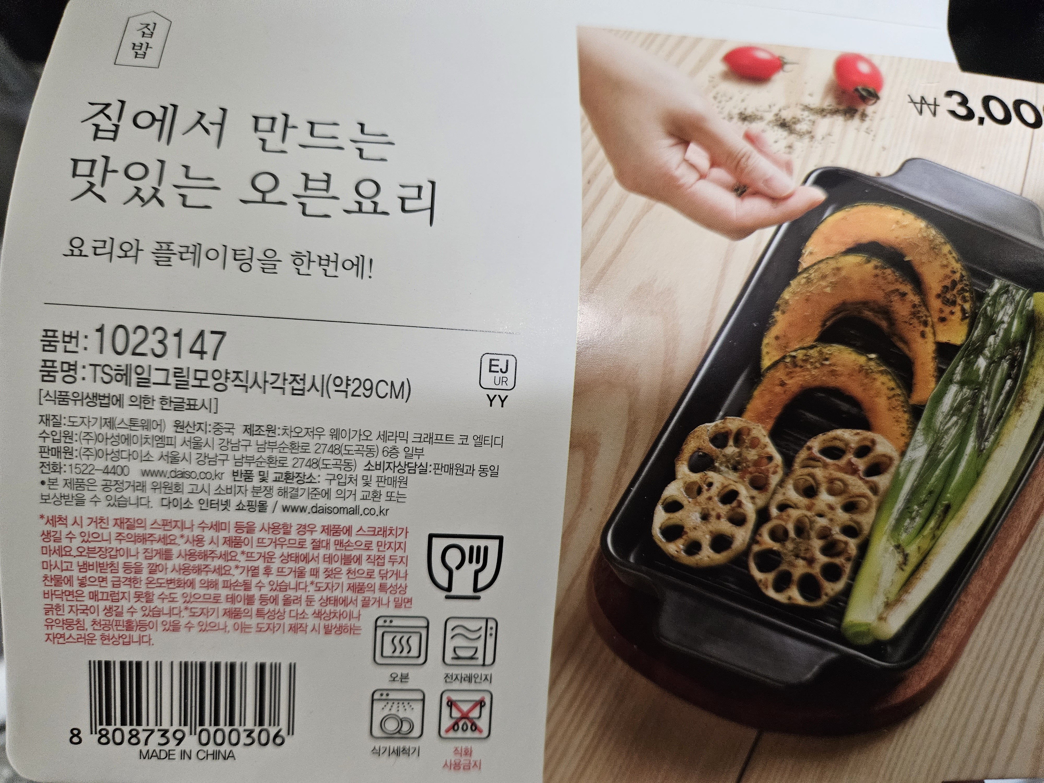 재질은 도자기 느낌이 드는 재질로 무게감이 있습니다. 오븐뿐만 아니라 전자레인지에도 사용이 가능하고 식기세척기에도 사용 가능하네요! 직화는 불가합니다!