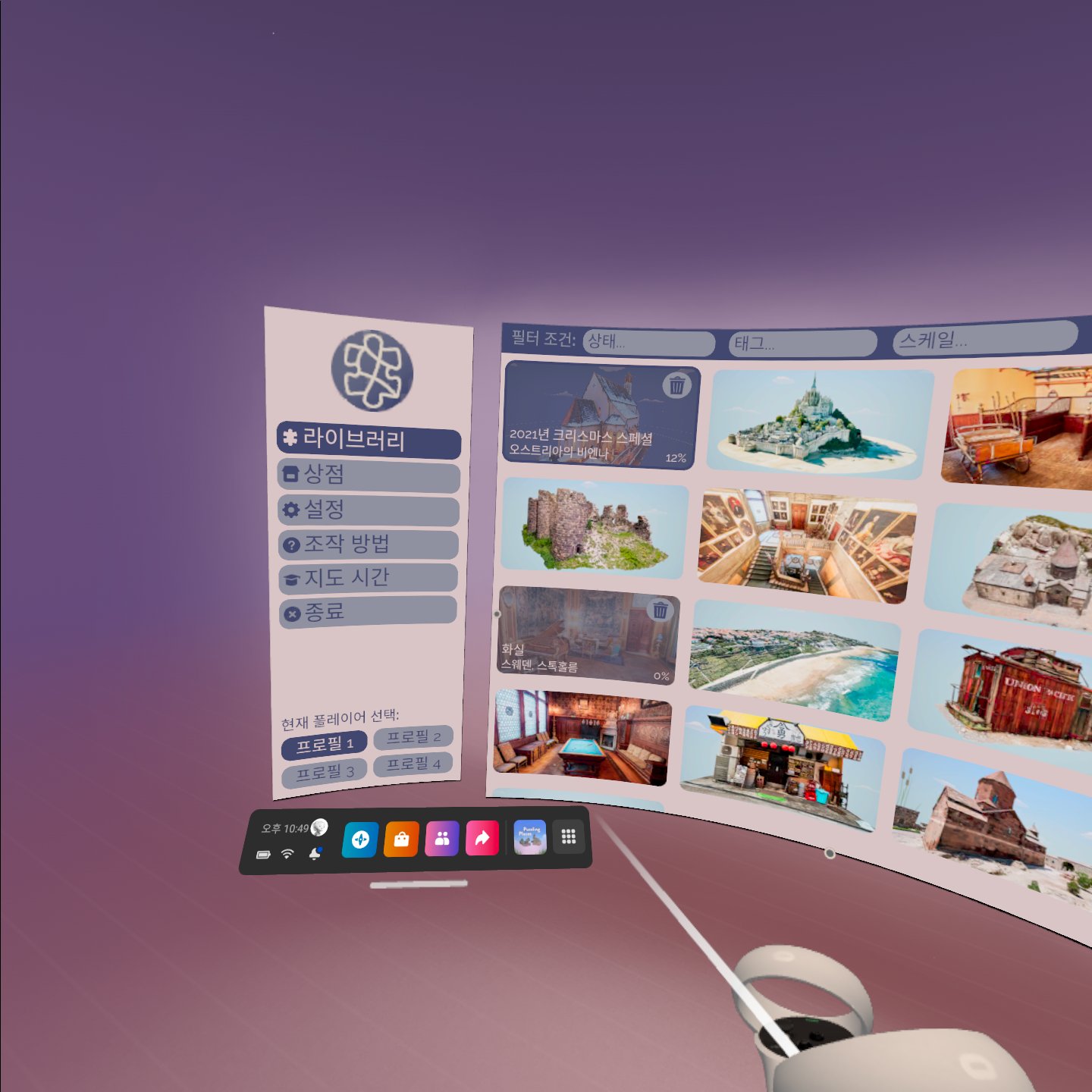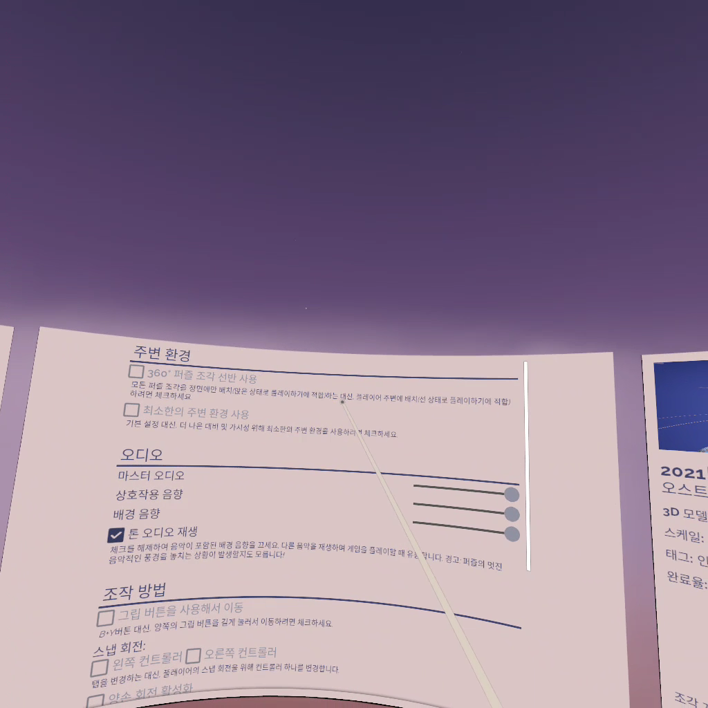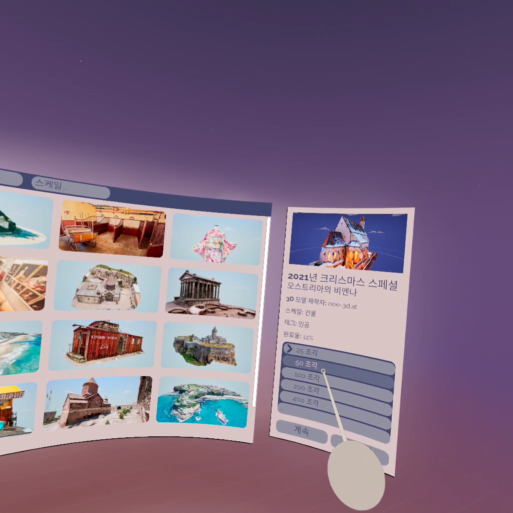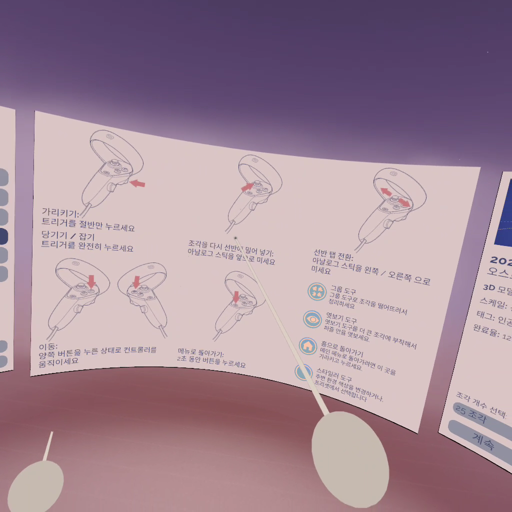 쉽게 말해 퍼즐을 맞추는 게임이고 VR로 3D의 퍼즐 조각을 맞추는 게임입니다.