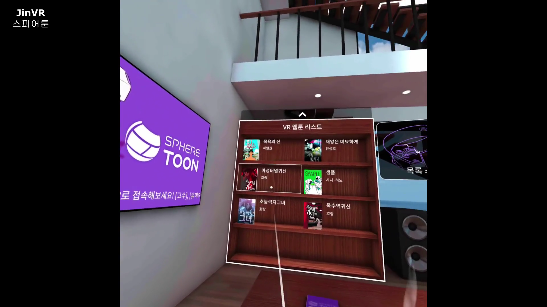 웹툰 말 그대로 웹에서 볼 수 있는 웹툰인데, 스피어툰 VR 웹툰에서는 VR환경에 맞춰서 웹툰을 볼 수 있습니다.