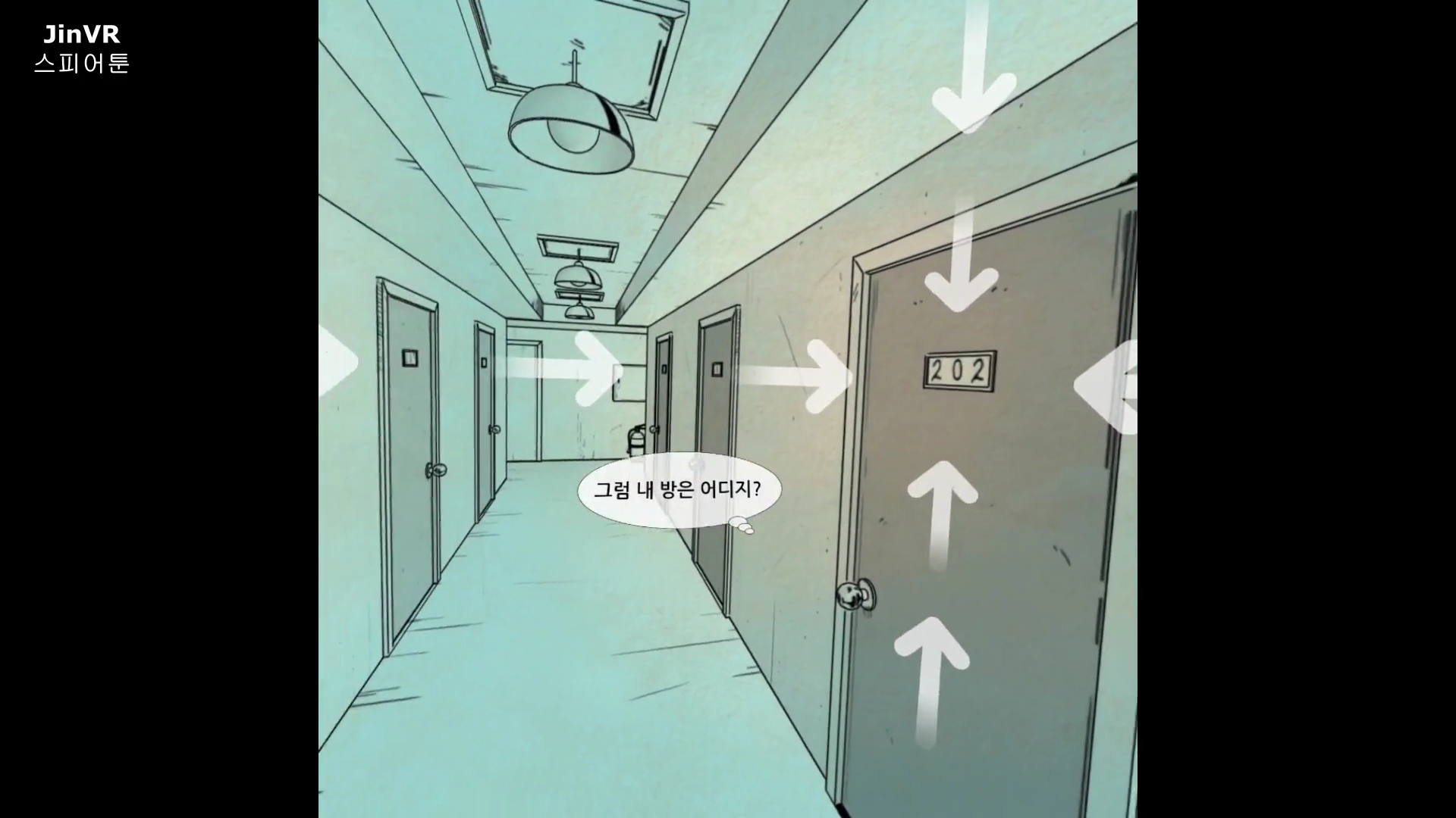 웹툰의 장면을 넘어가면서 보면서, 각 장면에 BGM 혹은 효과음이 나오기도 하고, 특정 장면에서는 360도 화면을 제공하거나 VR과 상호작용( 포커싱 등에 의한)이 존재한 것으로 확인 됩니다. 오큘러스 퀘스트2의 경우 간단한 트리거 버튼을 통해서 화면 전환이 됩니다.