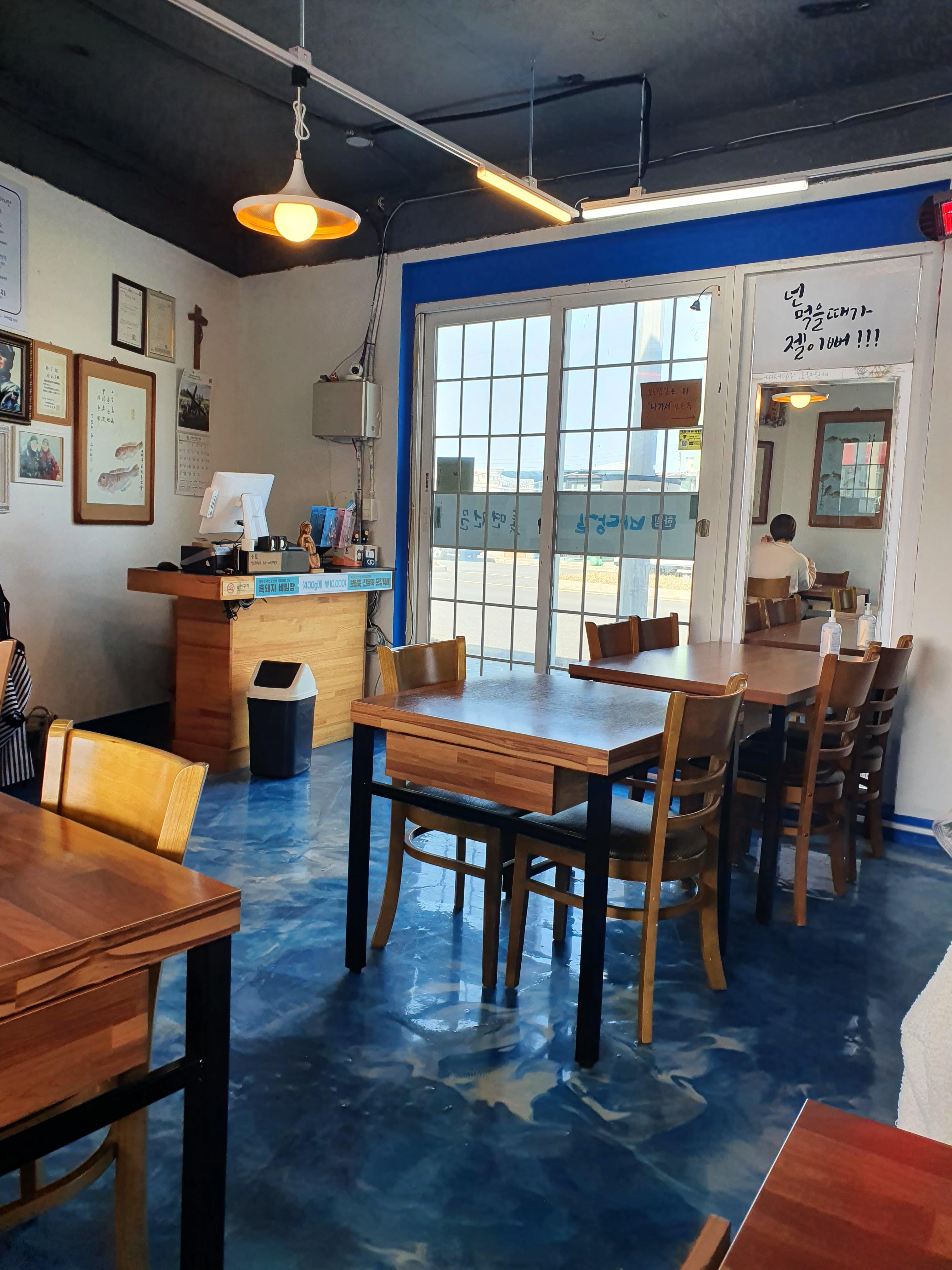 가게는 생각보다 아담하다고 생각했는데 외부 테라스 좌석도 있긴했습니다. 바로앞에 바닷물이 모이는 곳? 이라서 뷰도 꽤 좋은 것 같아요.