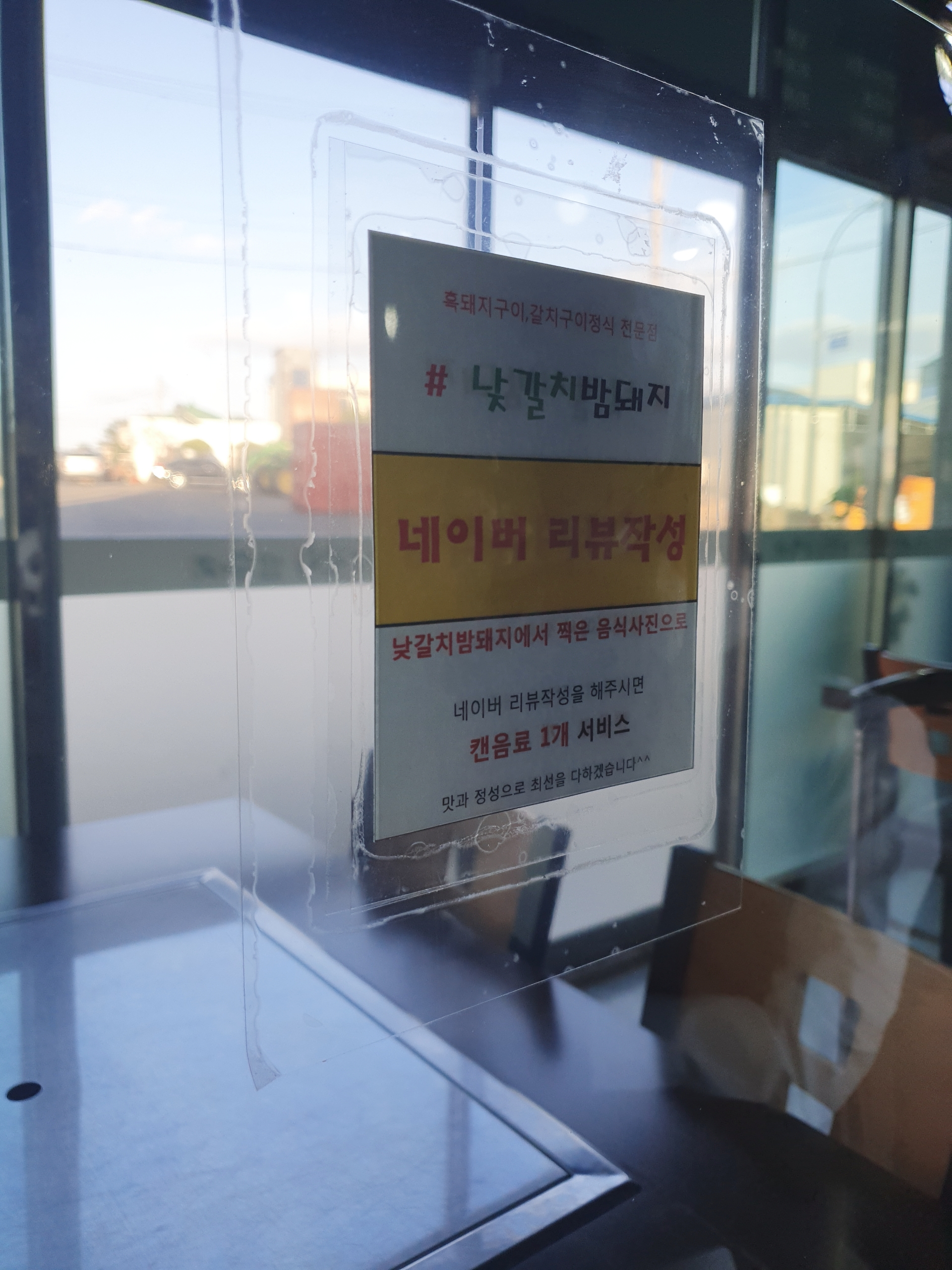 다양하게 판매를 하셔서 가게이름도 낮갈치 밤돼지 인것 같죠? 사실 제가 이곳에 방문한 이유는 마지막으로 제주도에서 갈치를 먹고 싶었는데, 갈치한상이 아무래도 유명해서 먹어볼까 싶었지만 다른것들을 많이 먹기도해서 갈치한상은 조금 과한 느낌이 강했습니다. 그래서 찾다가 발견한게 갈치정식이었어요. 이곳 말고도 더있긴했지만 동선에 맞는 가게로 찾았습니다. 사실 리뷰도 찾아보고 좋아서 방문했는데 리뷰이벤트를 하고 있어서 식겁했어요..당했나..