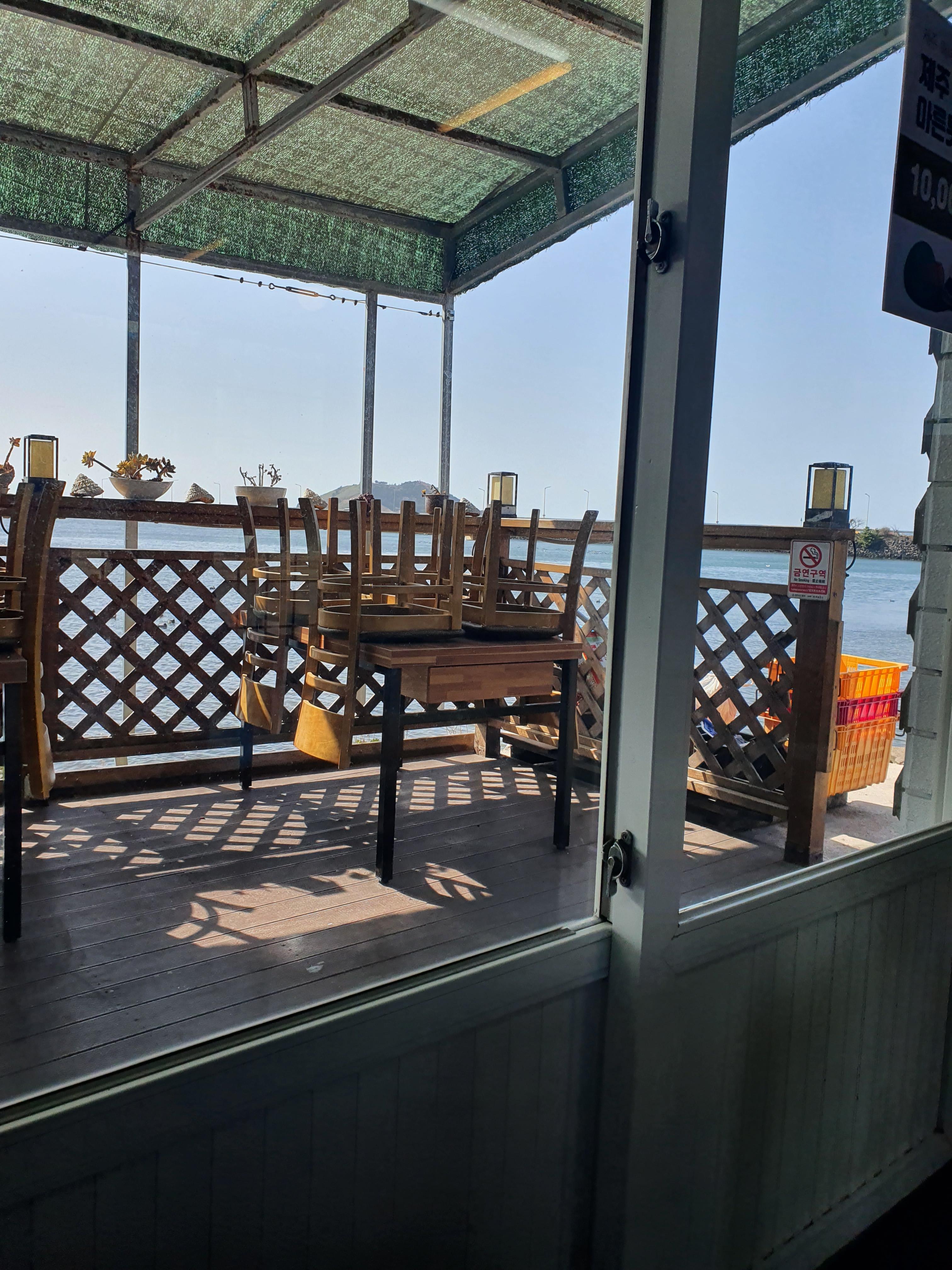 가게는 생각보다 아담하다고 생각했는데 외부 테라스 좌석도 있긴했습니다. 바로앞에 바닷물이 모이는 곳? 이라서 뷰도 꽤 좋은 것 같아요.