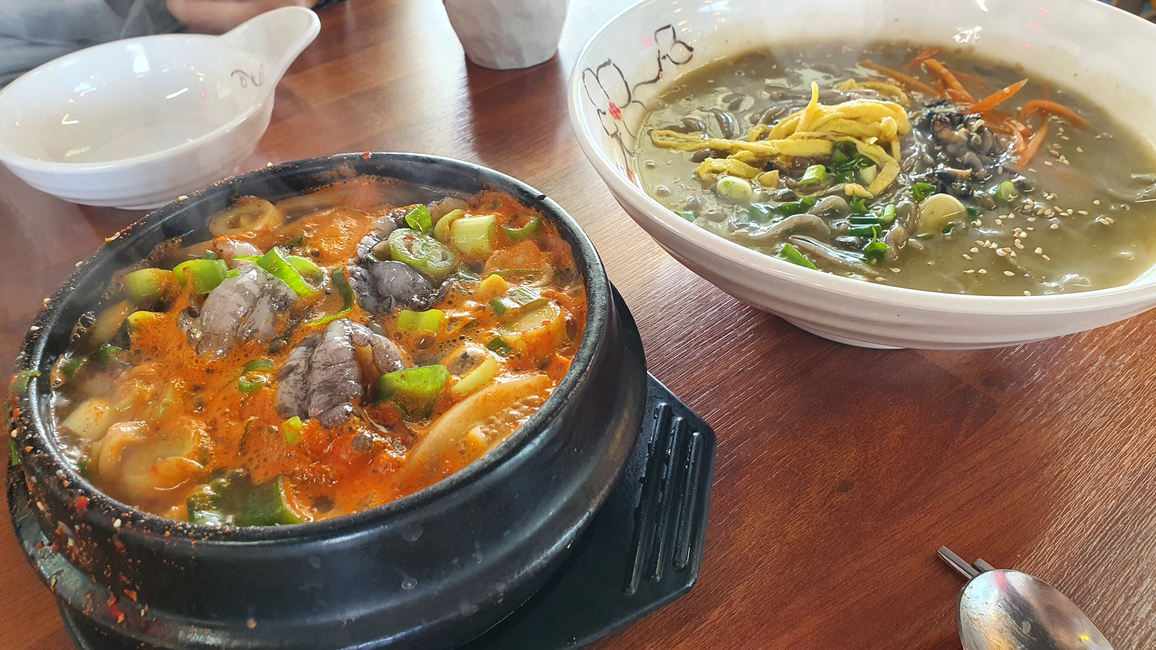 전복뚝배기는 해물탕 느낌이긴한데, 맛은 있는데 특별한 맛이진 않았고, 그냥 맛있게 먹었어요. 그리고 공기밥1개 추가되서 나오는데 저는 칼국수를 먹고 보말칼국수 국물에 밥을먹었어요. 이러면 보말죽아닐까요..?ㅎㅎ