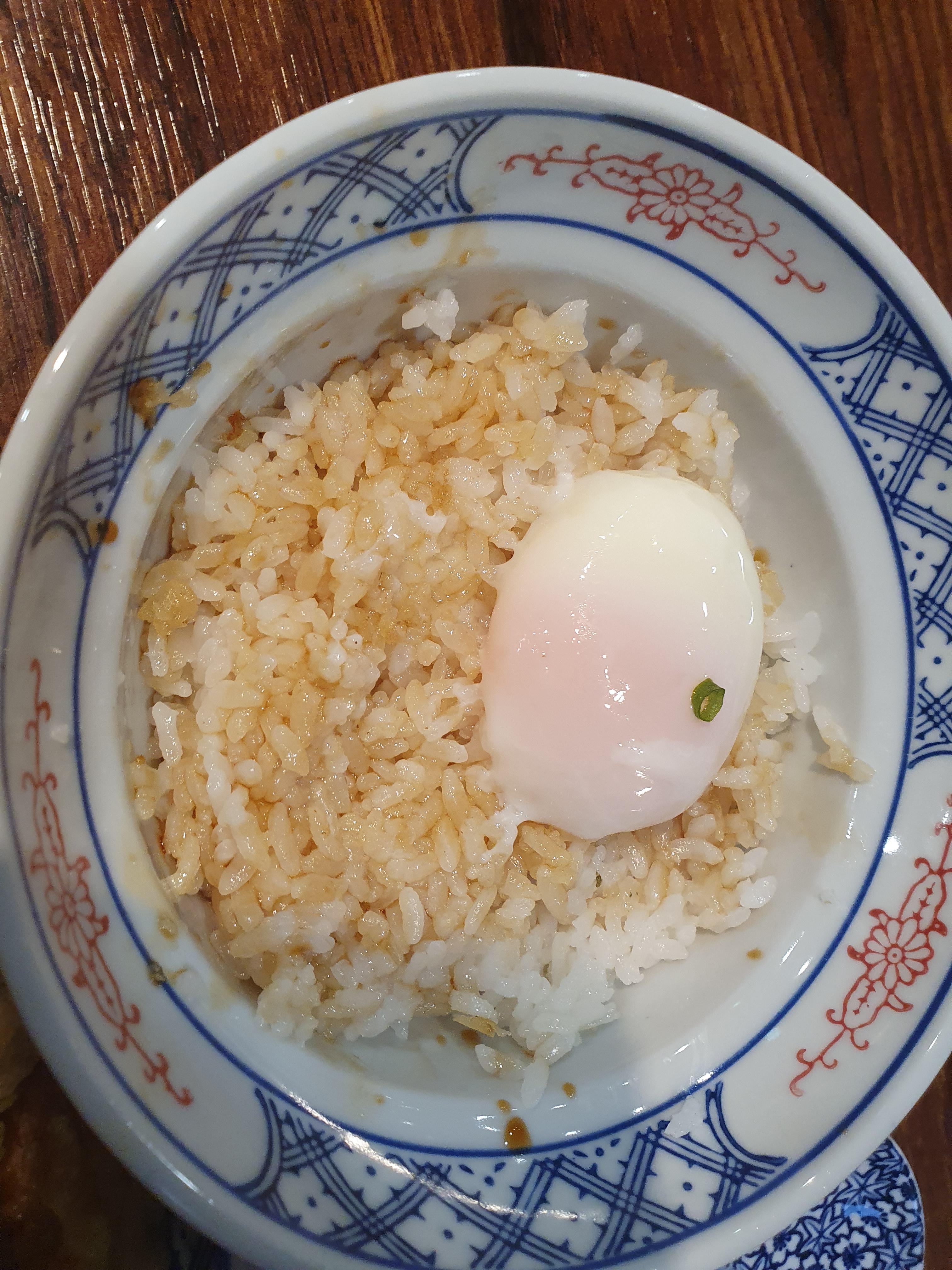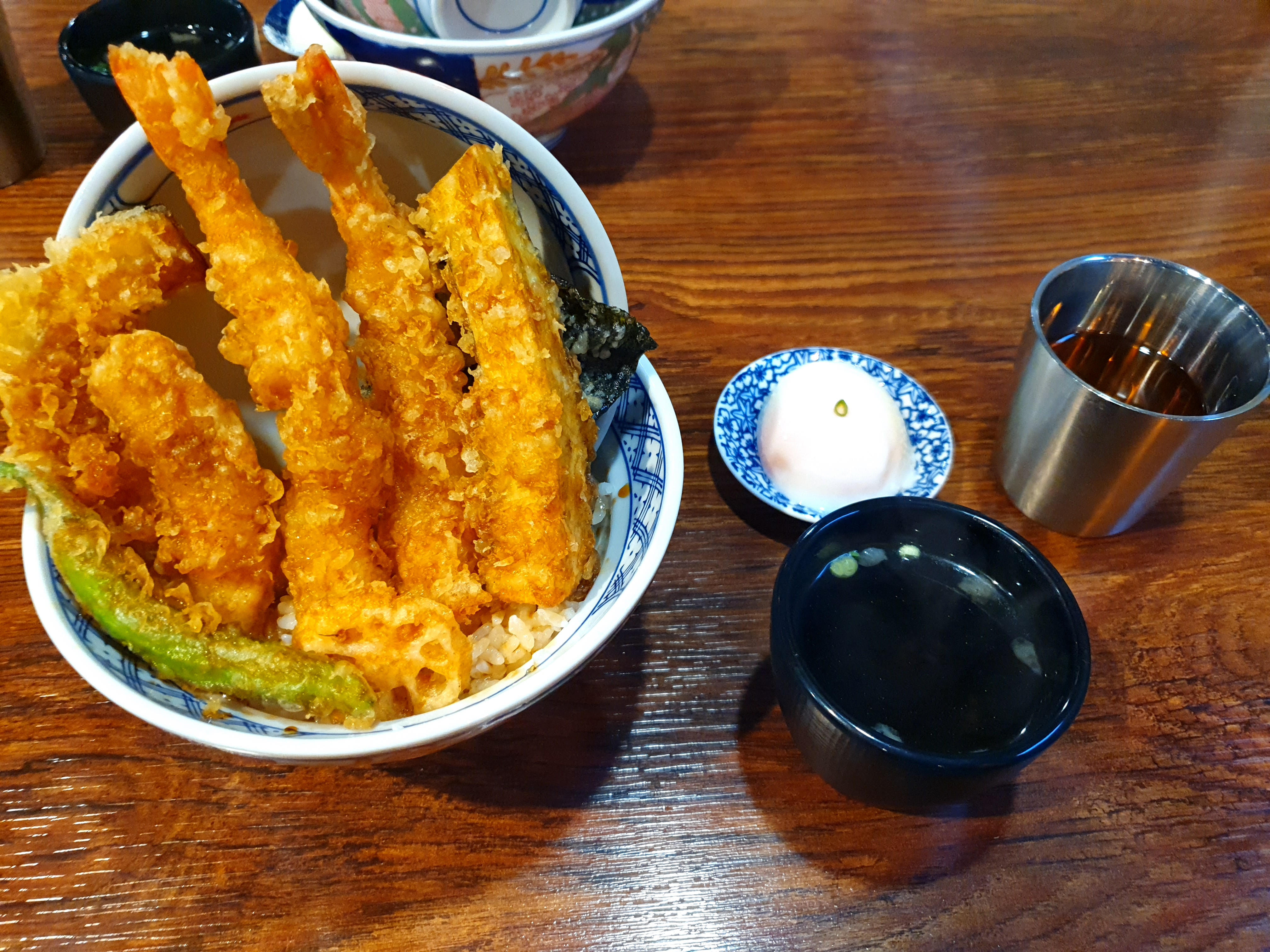 새우2, 오징어, 단호박, 가지, 꽈리, 연근, 김튀김이 있으며 특제소스인 간장소스는 각 테이블마다 배치가 되어있어서 개인 취향대로 추가 할 수 있습니다. 수란은 밥과 같이 비벼드시면 되고, 모두 간도 잘맞고 맛도 있네요.