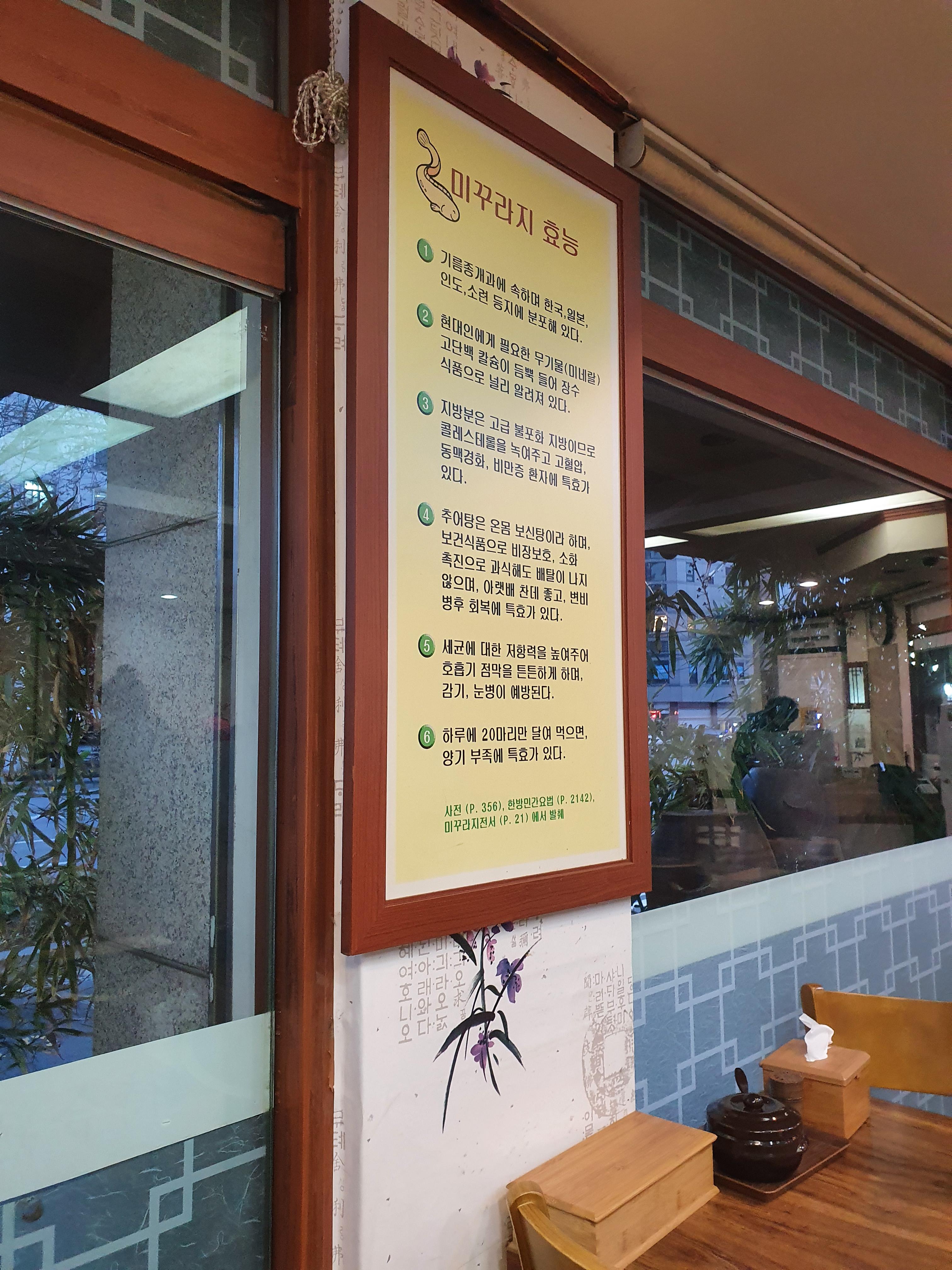 추어탕이 건강보양식인 이유는 미꾸라지가 재료이기 때문이기도 한데 미꾸라기가 무기물 고칼슘 단백질이고 고급 불포화지방산이라서 콜레스테롤은 녹여주고 고혈압, 동맥경화, 비만증 환자에게 효과가 있다고 합니다! 또한 온몸보신탕이라 하여 보건식품으로 비장보호, 소화촉진,아랫배 찬데 효과, 변비 병후 회복 효과 등도 있으며 세균 저항력을 높여주고 호흡기 점막을 튼튼하게 하며 감기, 눈병 예방 효과가 있다네요. 양기까지 채워주고요.