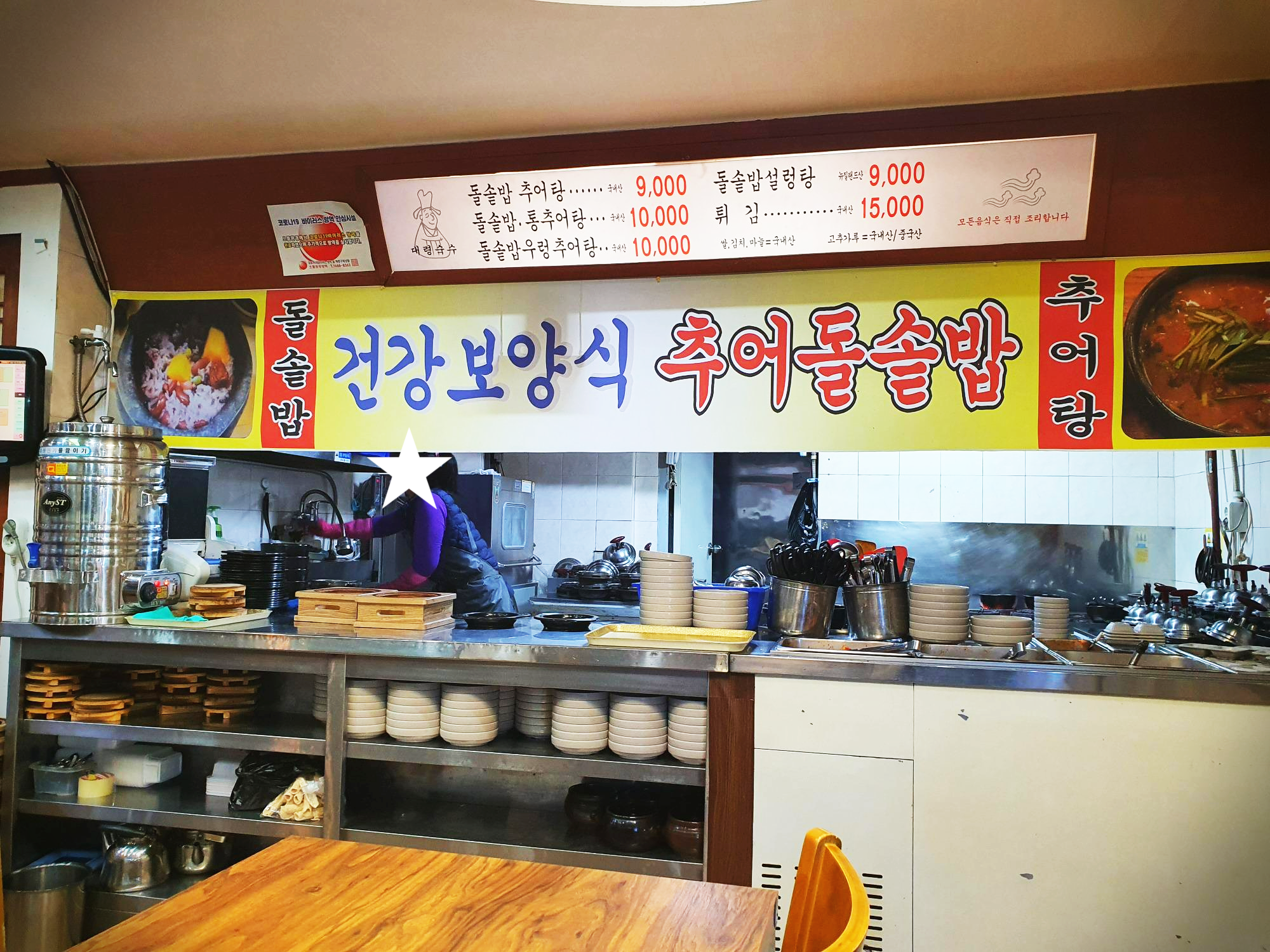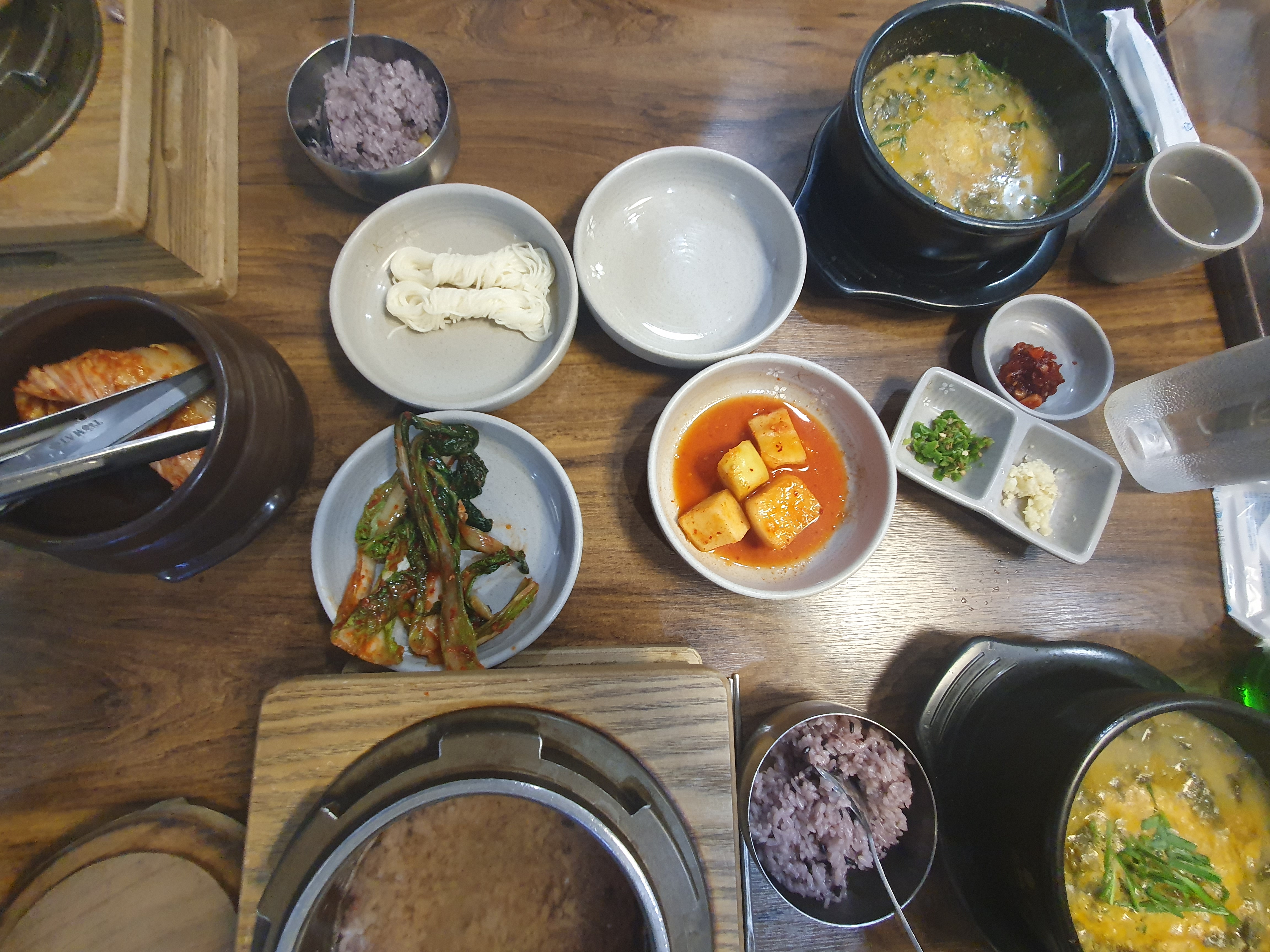 기본적으로 추어탕과 돌솥밥이 나오고, 깍두기, 김치등 기본 반찬들이 나와요. 돌솥에 있는 밥을 덜어내고 안에 물이 채워서 누룽지탕으로 먹고, 덜어낸 돌솥밥을 추어탕하고 먹습니다.