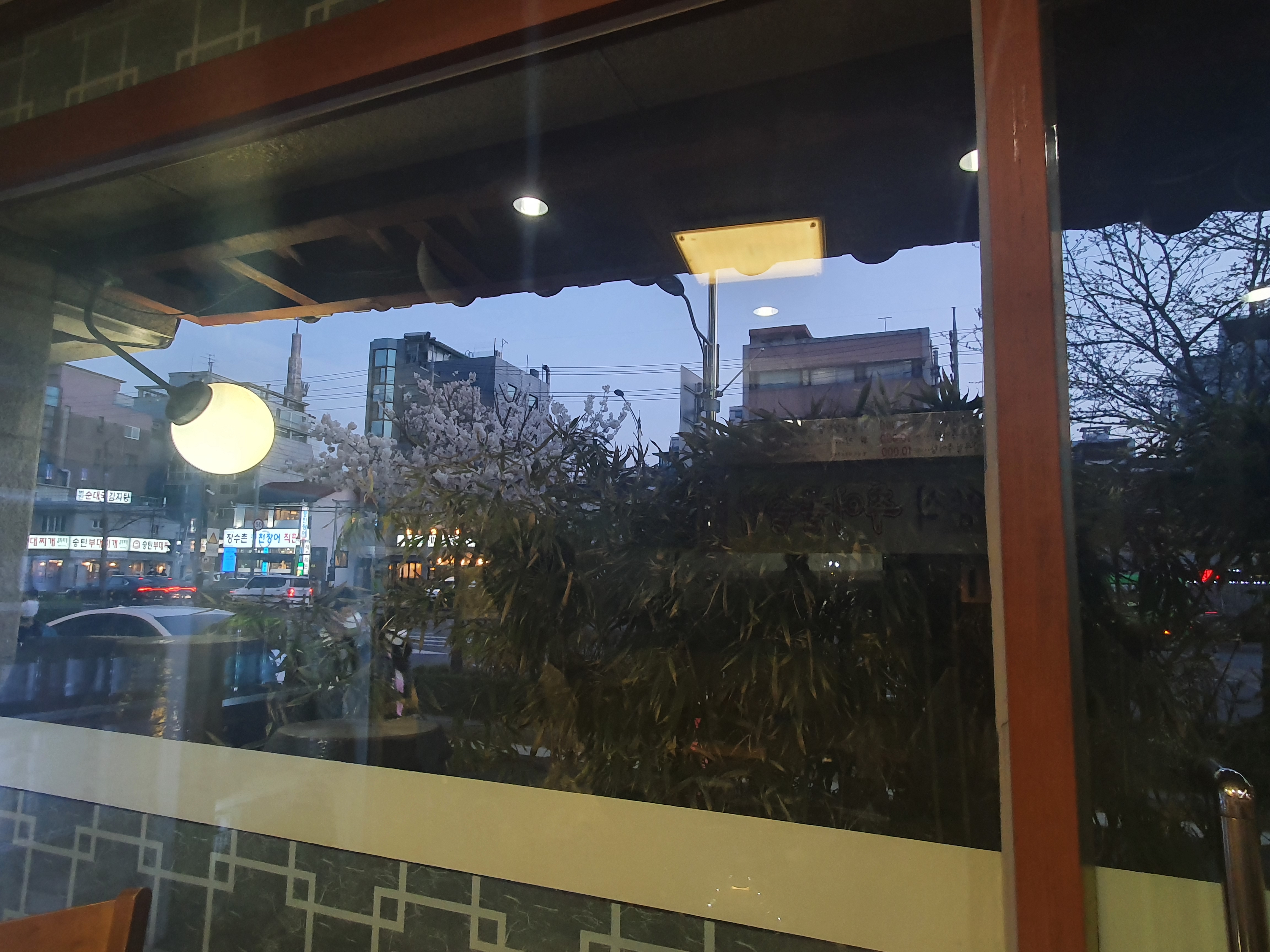 그리고 도로변 앞쪽에 바로 가게가 있는데, 이쪽에 벚꽃나무들이 있어서 창가에 앉으면 벚꽃도 구경하실 수 있어요. ㅎㅎ 요즘은 앞이 좀 막힌 느낌이 있긴한데 나름 기분도 좋네요.