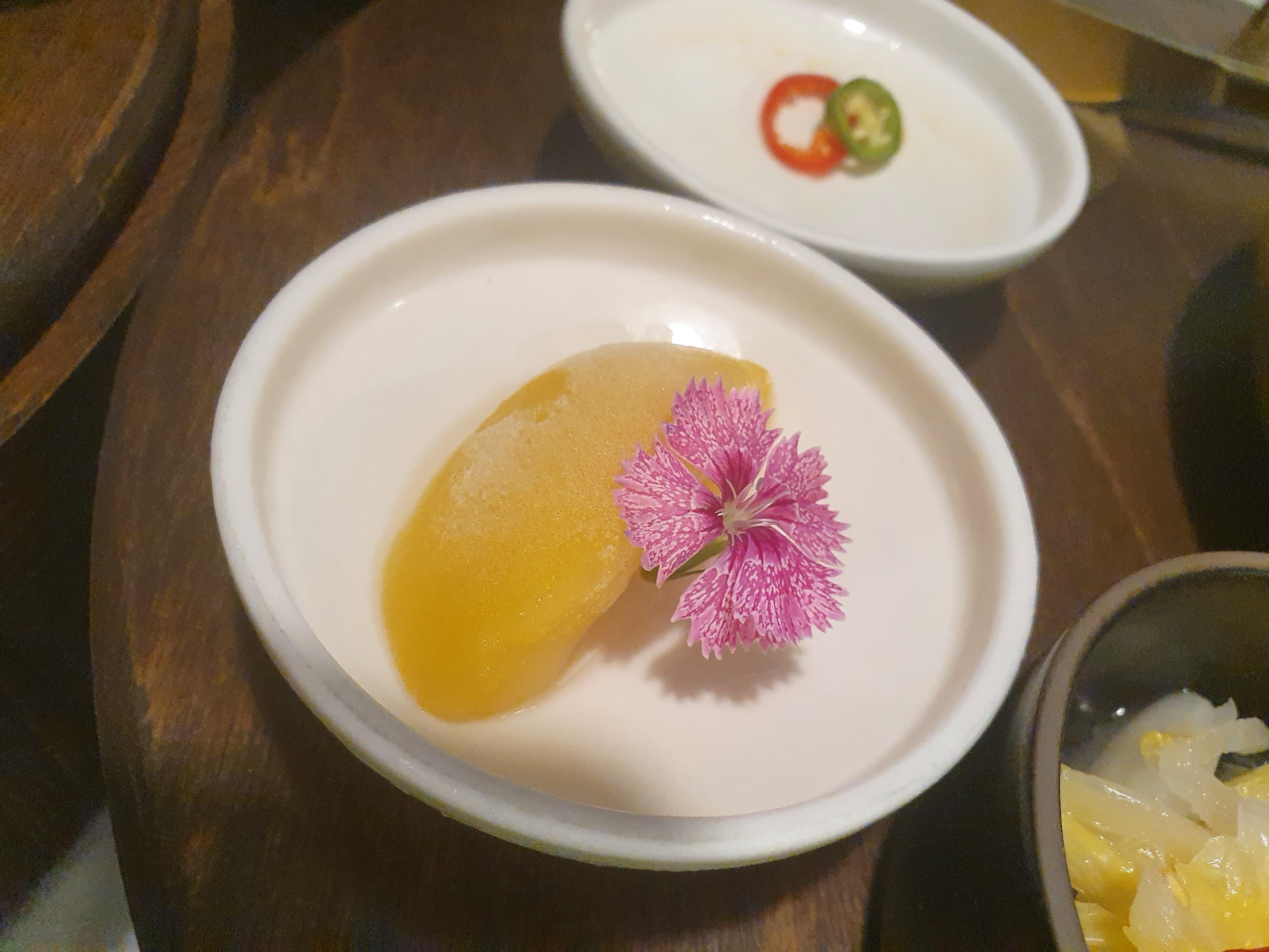 비주얼만 보면 고급 한식 레스토랑에서 볼 듯한데 이렇게 가까운 곳에서 보니 참 좋아요. 맛은 각각의 맛이 강하지 않고 본연의 맛이 잘나는 듯했습니다. 강한맛이라기 보다는 담백하면서 본연의 맛이 나는 느낌이라 거부감없이 즐기실 수 있을 듯합니다! 백김치와 장떡이 같이 나오고 한상으로 나오는 것도 테이블과 세트인 듯 하더라구요. 수저 나이프등 사소해보이는