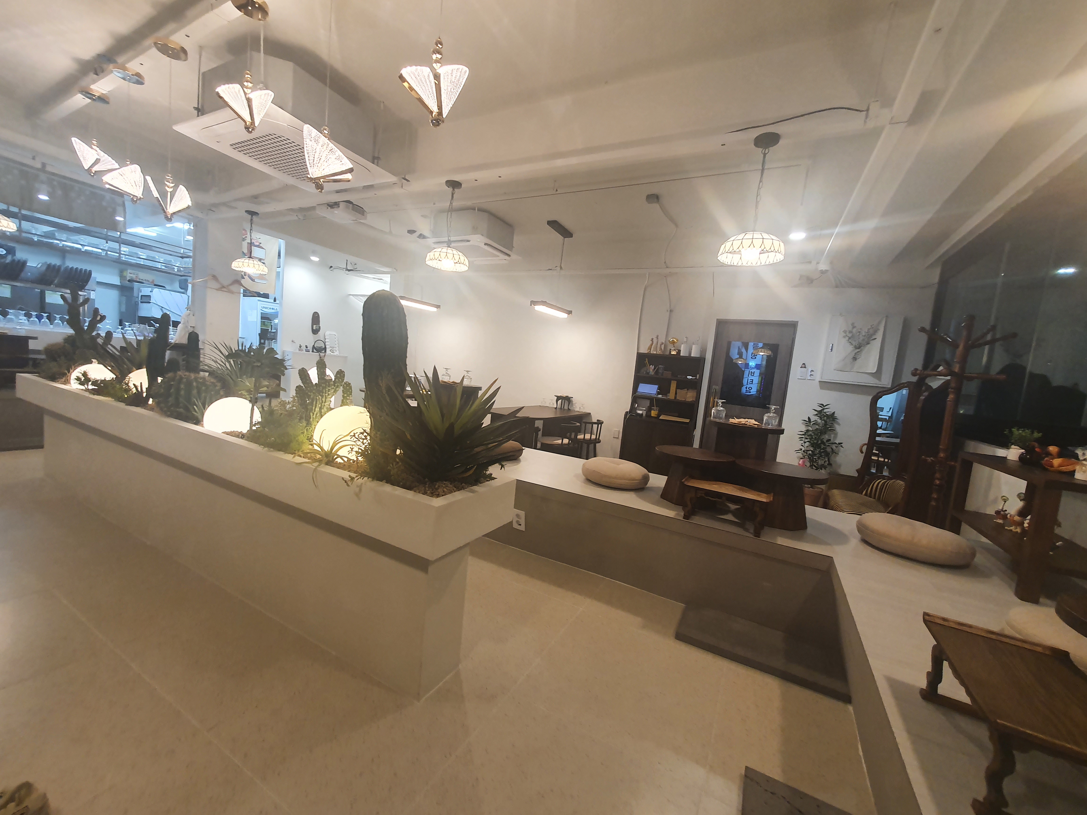 방문하니 인테리어를 정말 잘하셨어요! 창가쪽 좌식으로 자리가 만들어져 있고 창문이 폴딩도어로 날씨가 좋아서 모두 오픈해두셨는데 너무 개방감이 좋았습니다. 인테리어 테이블이나 사소한 것 하나하나가 이쁘다는 느낌이 들고 신경쓰신 것 같았습니다. 인테리어만 보면 정말 만점이라고 생각됩니다! 혹시 춥거나 하신분들을 위한 담요도 준비되어있어요!