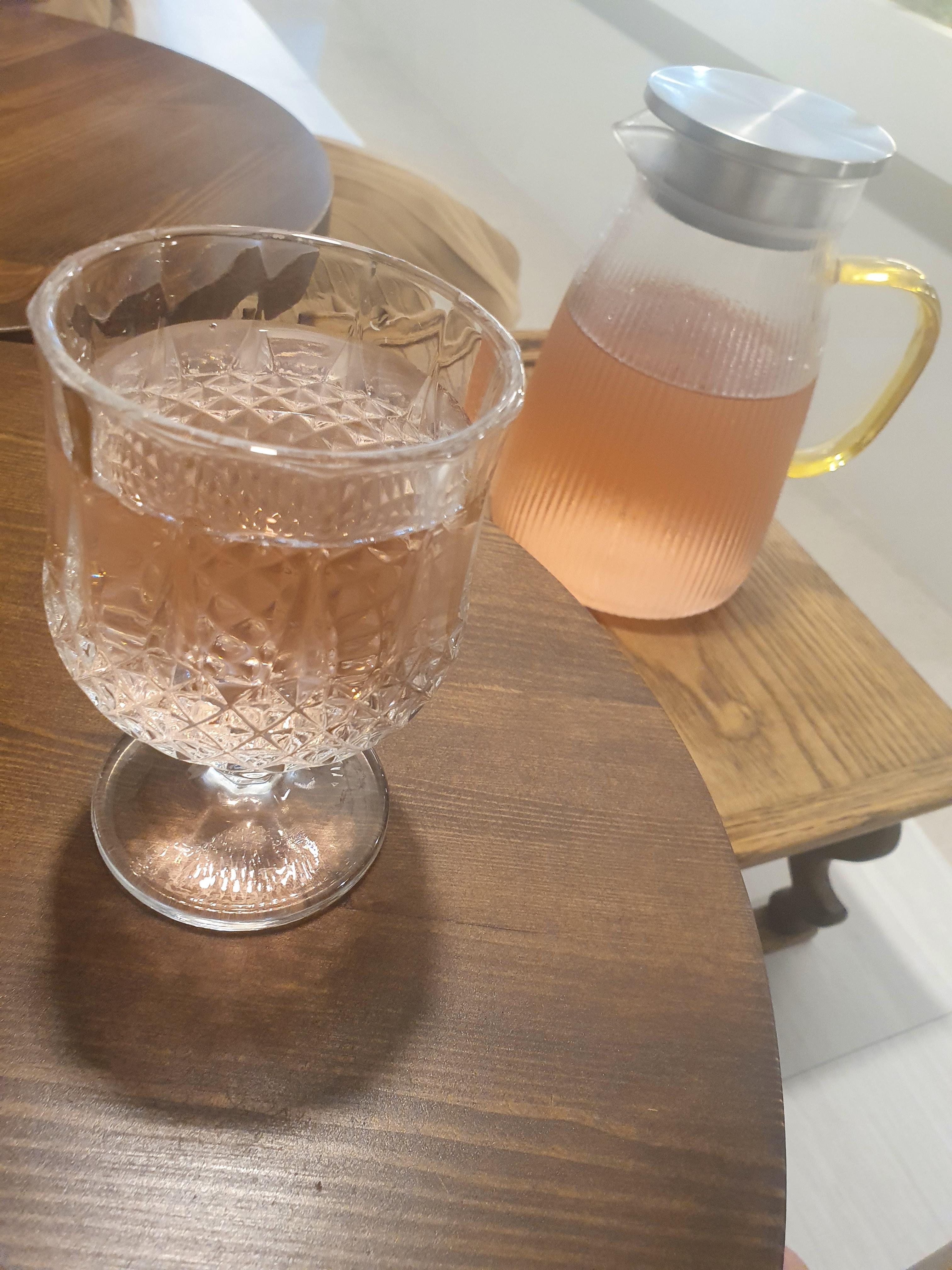 기본으로 물을 가져다 주시는데 기본물이 히비스커스찻물을 주시더라구요! 색도 이쁘고 히비스커스차를 좋아하시면 더욱 좋겠네요. 그리고 혹시 히비스커스찻물이 아닌 생수를 원하시면 말씀해달라고 하시더라구요!