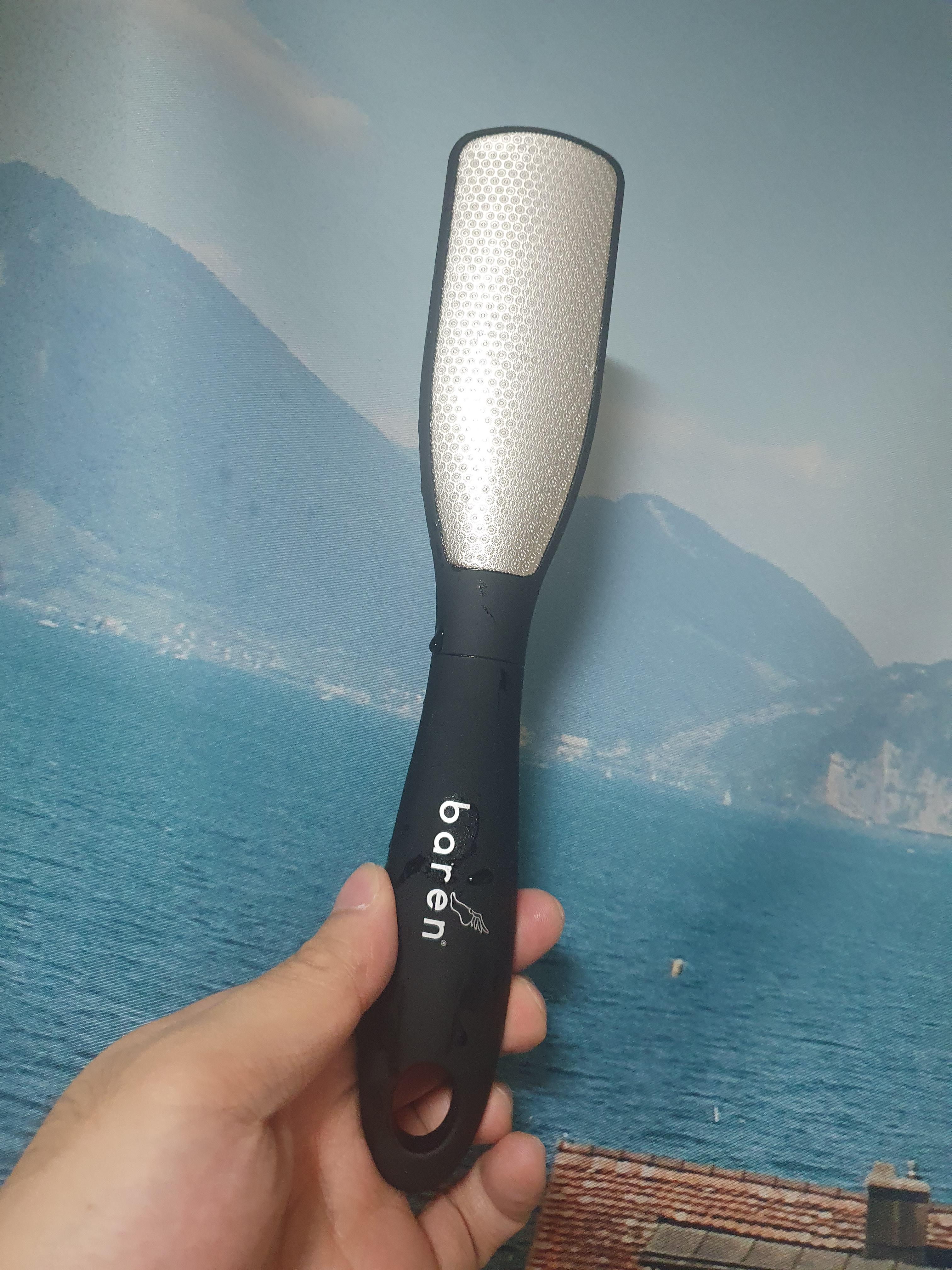 장점 - 일단 유리가 아니고, 스텐이라 관리가 매우 편리합니다. 거의 깨질걱정은 할 일도 없고, 사용 후 씻어내기도 편합니다. 손잡이도 따로있고 길이감도 있어서 혼자서 사용하기 너무 편하게 만들어져 있습니다. 걱정되던 것은 각질 제거가 잘 될 것 인가? 였는데 기존에 유리제품과 비교해도 손색없다고 생각되었습니다. 유리제품이 좀 더 잘 갈리긴 하는거 같은데 너무 강하면 오히려 다칠까 걱정도 되는데 적정수준이라고 느껴져서 더욱 좋아요!